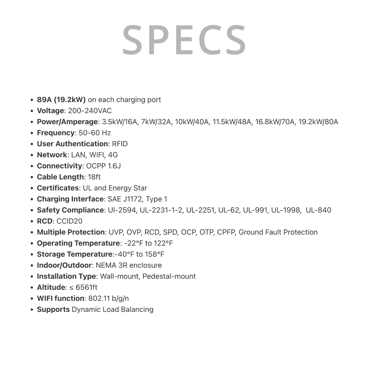 80A Commercial Dual EV Charging Station, Dual CSE3 Level 2, RFID