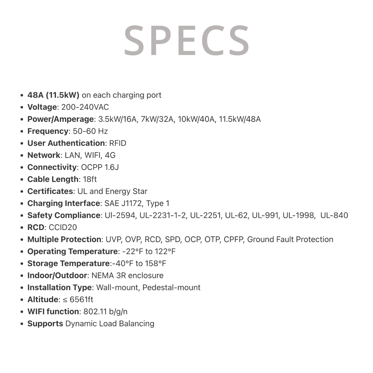 CSE1 Dual commercial Level-2 EV charging station could supply up to 48A on each charging port. Easily accept payments, set up charging rates, let your customers reserve and schedule charging sessions via the mobile app. With the highest uptime rate in the industry, CSE1 guarantees up to 40 miles on every hour of charging.